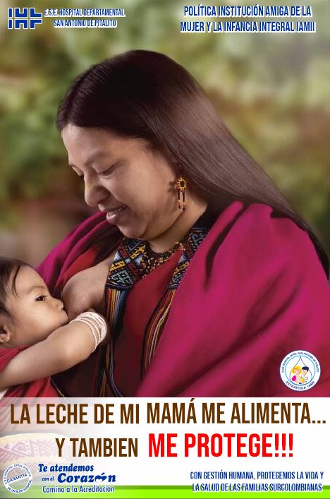 La E.S.E. Hospital Departamental San Antonio de Pitalito, a partir de su plan de desarrollo está comprometida a brindar atención, cuidado y protección a madres, niñas y niños, implementando los 10 pasos que nos hacen una Institución Amiga de la Mujer y la Infancia Integral, con estrategias que promuevan el respeto de sus derechos, orientación a las madres y sus familias en la preparación durante la gestación, parto y puerperio, con identificación de los signos de alarma para disminuir los riesgos de: morbimortalidad materno perinatal, atención del recién nacido, planificación familiar y en los cursos de vida de primera infancia, infancia, adolescencia y juventud.
