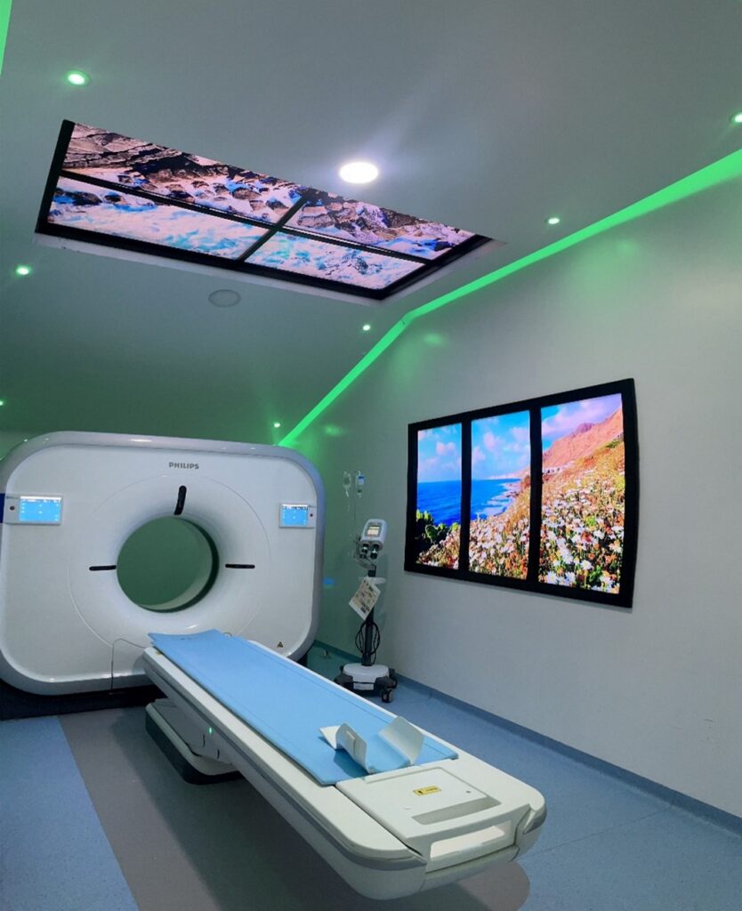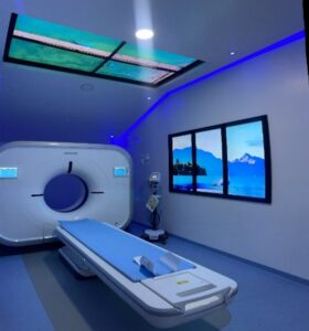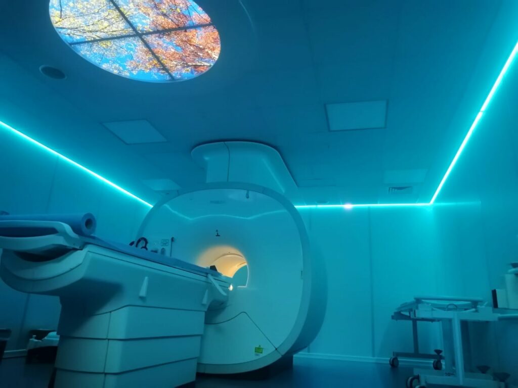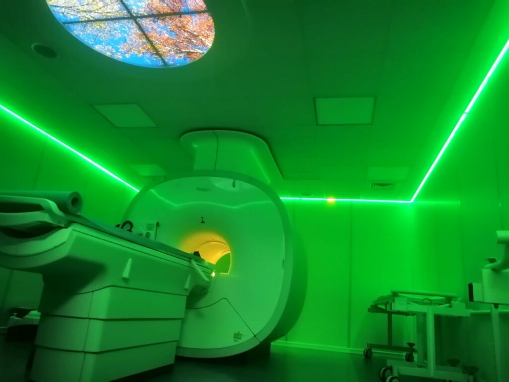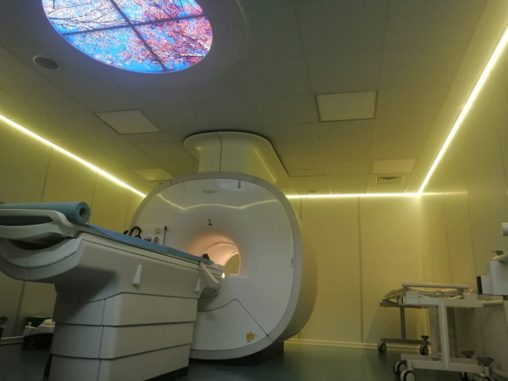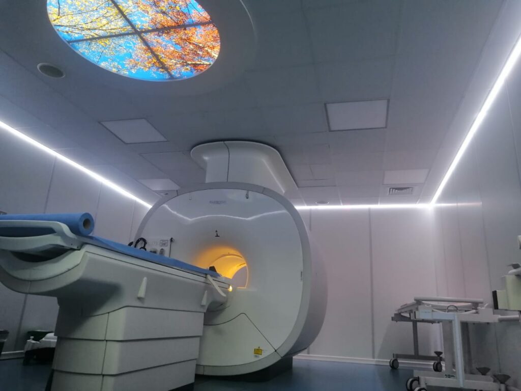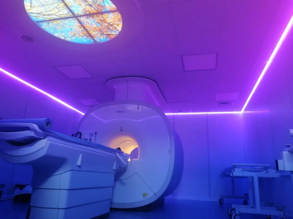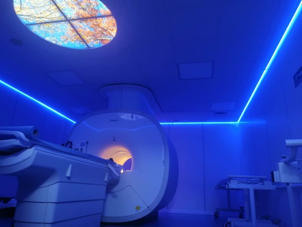 El equipo de resonancia cuenta con ambientación de luces led de colores, y audio (música) que ayudan a minimizar la claustrofobia.