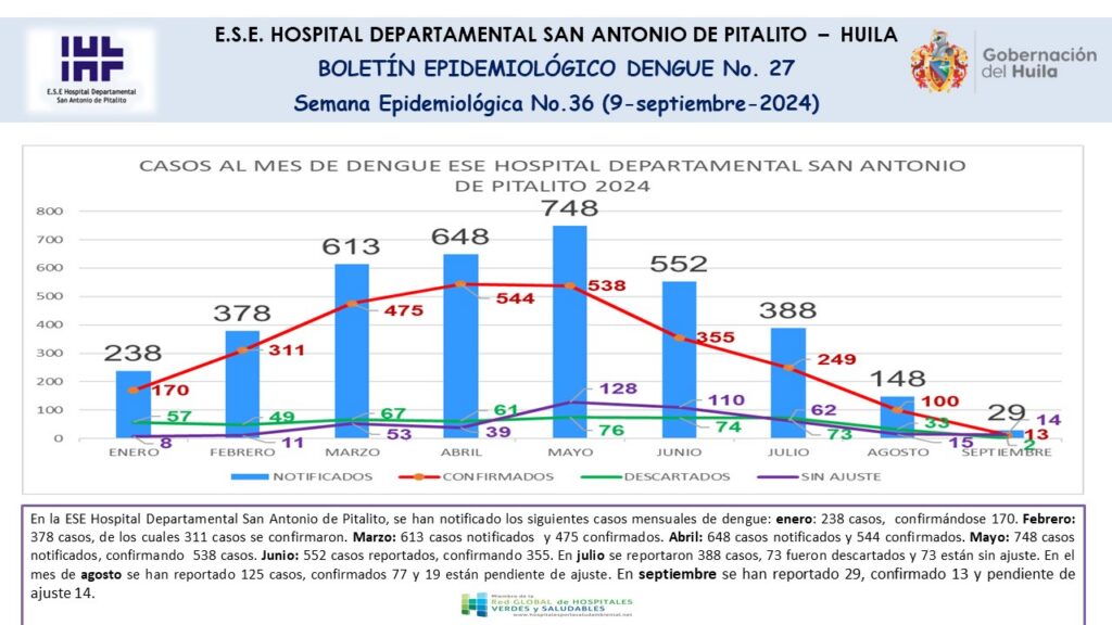 Desde el Hospital Departamental San Antonio de Pitalito, publicamos el Boletín Epidemiológico N.27, correspondiente a la Semana epidemiológica SE 36, con el análisis de los casos de dengue atendidos en el centro hospitalario.