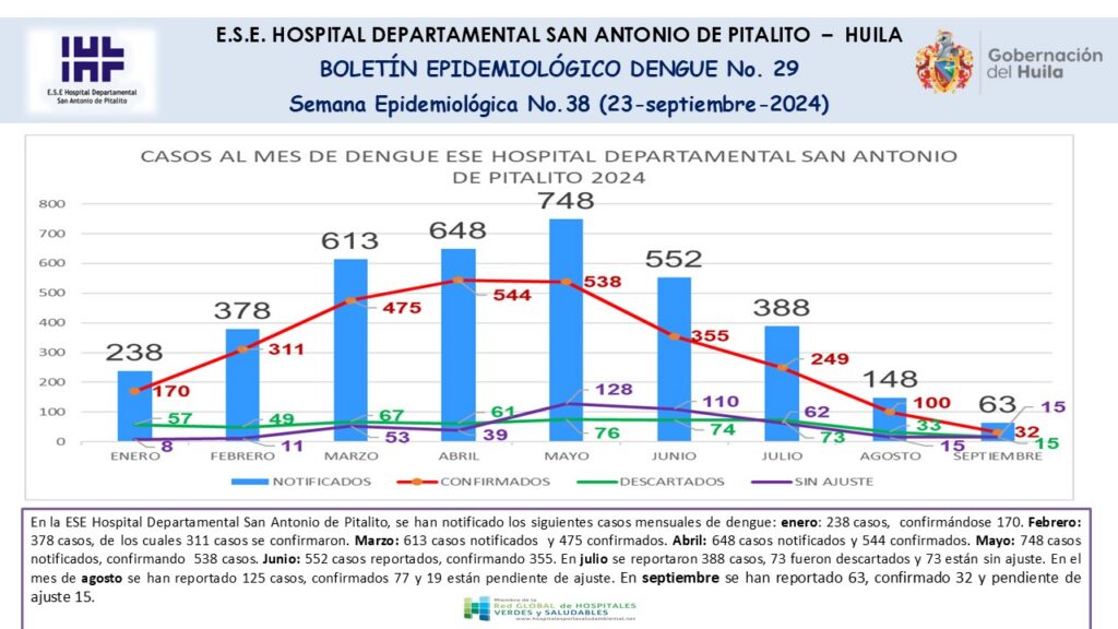 Desde el Hospital Departamental San Antonio de Pitalito, publicamos el Boletín Epidemiológico N.29, correspondiente a la Semana epidemiológica SE 38, con el análisis de los casos de dengue atendidos en el centro hospitalario.