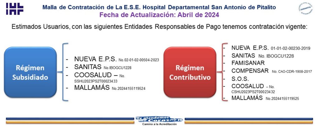 Malla de Contratación Vigente de La E.S.E. Hospital Departamental San Antonio de Pitalito.
