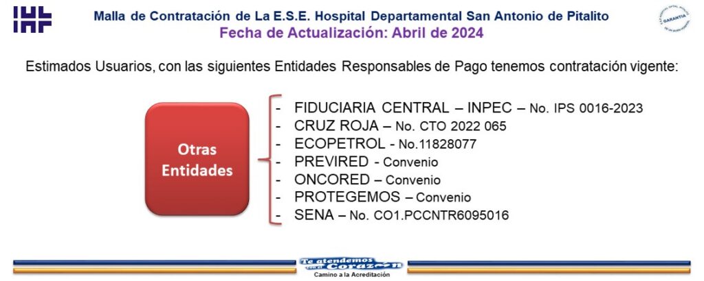 A continuación, se detalla las Entidades Responsables de Pago con las que tenemos contratación vigente: