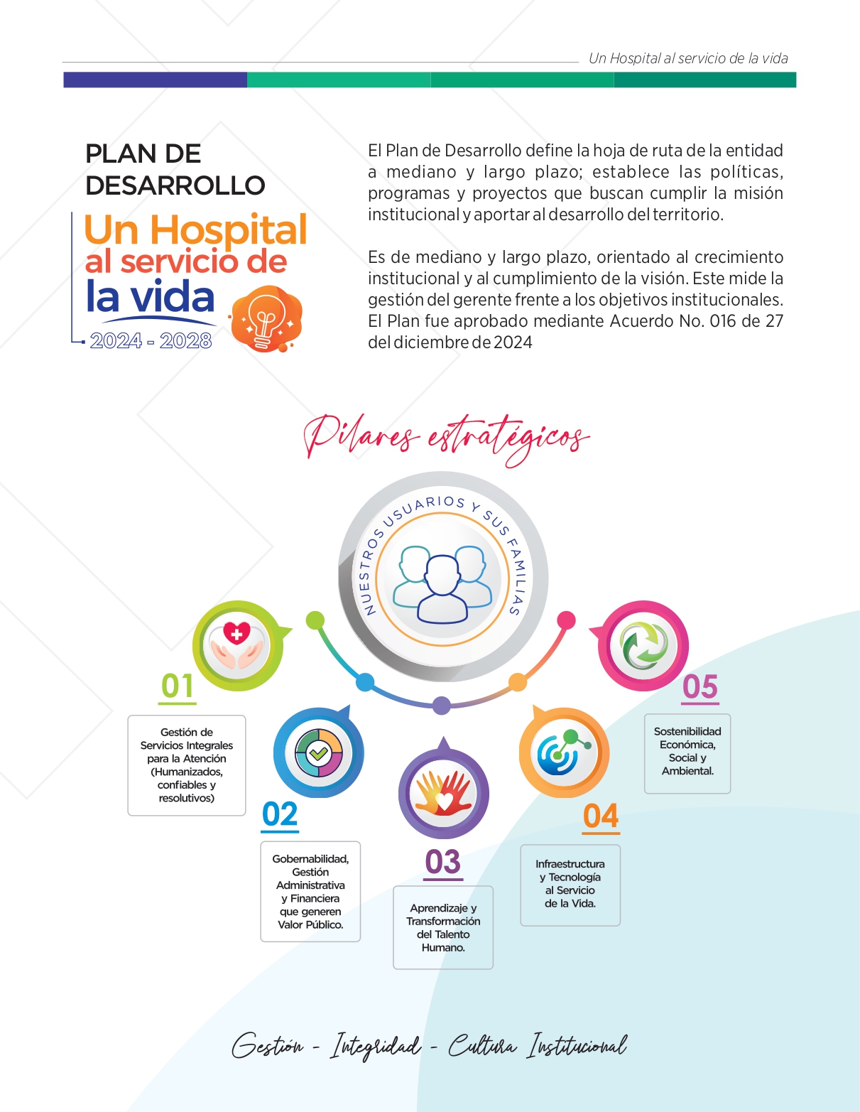 Prestar servicios de salud integrales de alta calidad, apoyados en un equipo humano competente y comprometido, promoviendo una atención resolutiva, humanizada y segura; contando con la administración eficiente de los recursos, fomentando la sostenibilidad económica, social y ambiental, impactando positivamente la calidad de vida de nuestra comunidad.